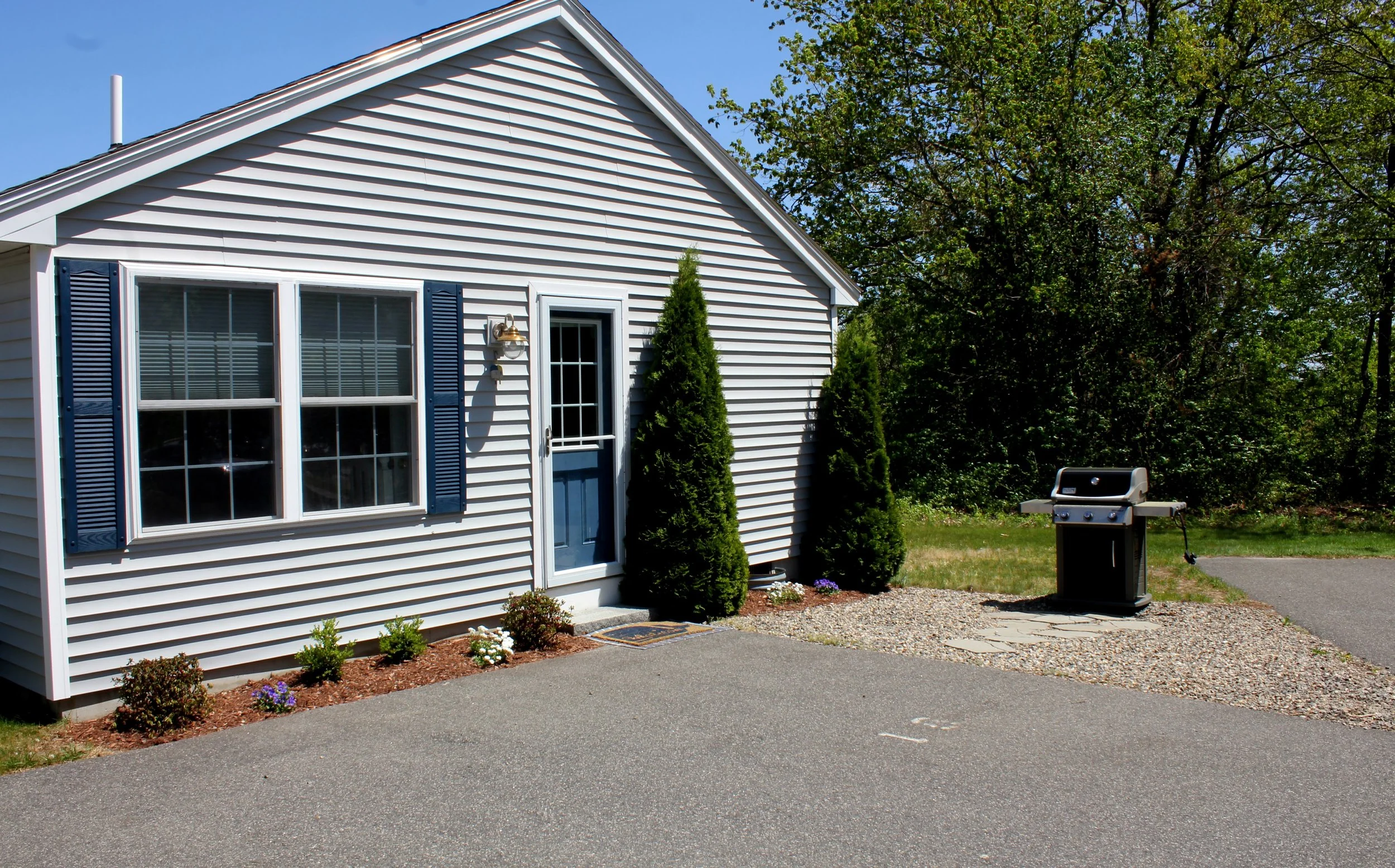 Each of our cottages boasts an open-concept living and dining area, complemented by an outdoor living space featuring a gas grill, screened-in porch, and expansive grassy lawns. Each contemporary cottage is designed to comfortably accommodate up to six guests.